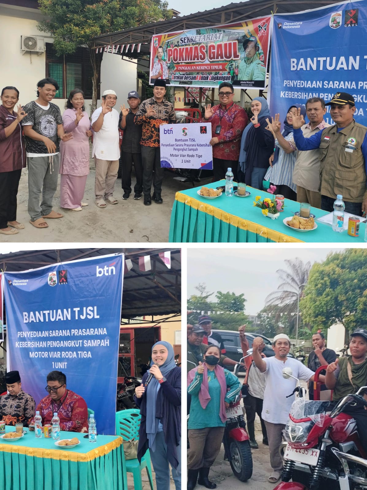 Sementara itu, Ketua Pokmas GAUL Adhe Sahputra, A.Md, yang diwakili oleh Sekretaris Abdul Rosyid, menyampaikan rasa terima kasih atas dukungan Bank BTN. “Semoga dengan bertambahnya satu unit motor Viar ini, keluhan masyarakat terkait permasalahan sampah dapat semakin terbantu,” ucapnya.