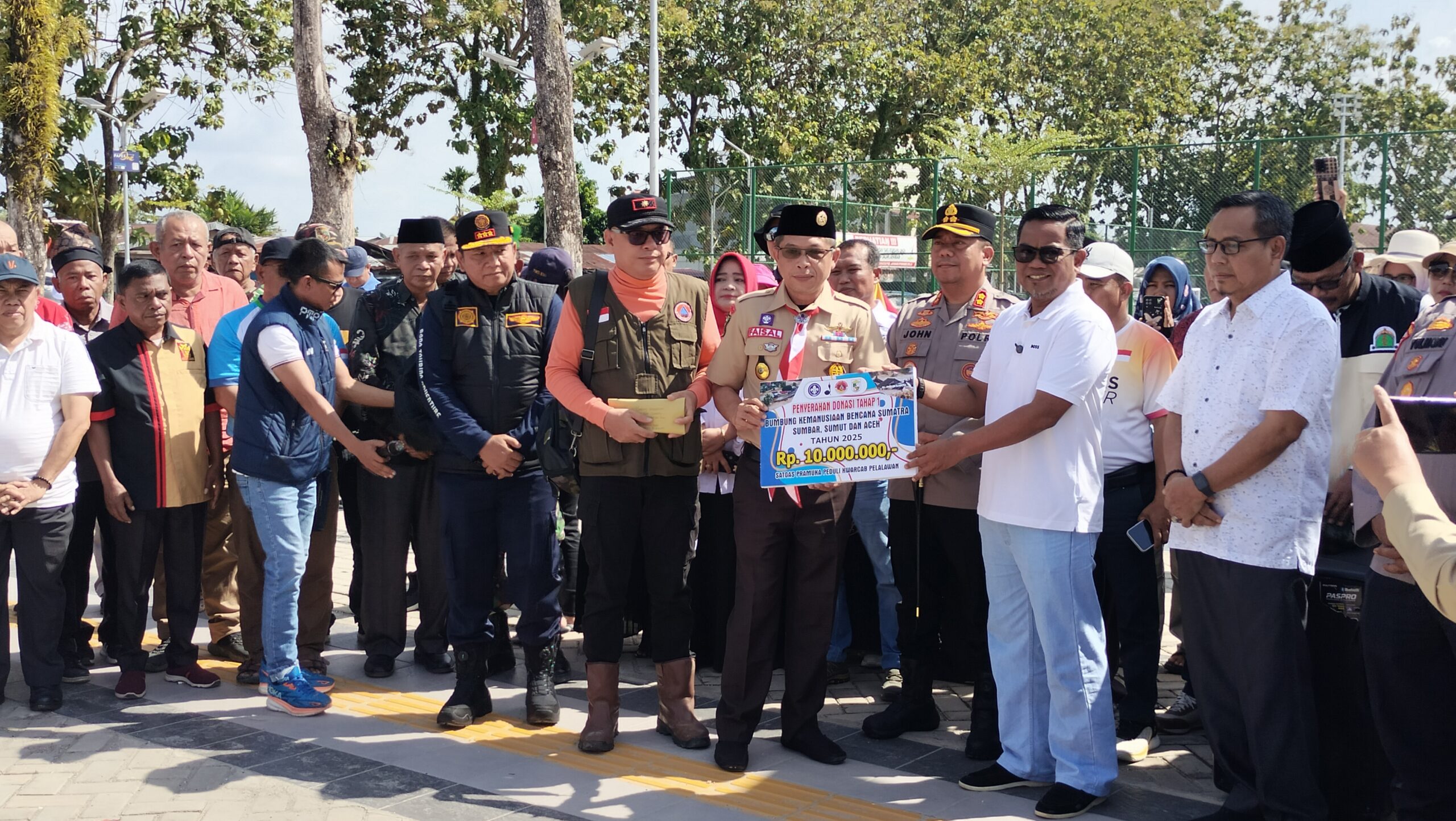“Perlu kami sampaikan kepada seluruh masyarakat Kabupaten Pelalawan, tim relawan kita berangkatkan ke tiga provinsi dan bantuan ini akan disalurkan ke tiga wilayah tersebut. Namun, ada provinsi yang sulit dijangkau seperti Aceh karena jaraknya cukup jauh, sehingga bantuan berupa barang belum bisa dikirim untuk didistribusikan hari ini. Kami melihat dari beberapa video bahwa apa yang telah kita kumpulkan saat ini masih belum sebanding dengan penderitaan yang dirasakan saudara-saudara kita,” jelasnya.