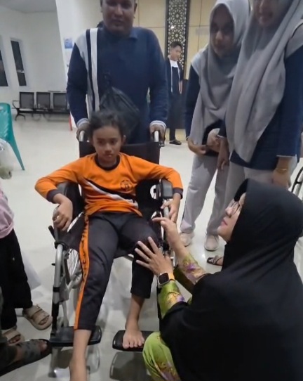 “Tadinya ananda ingin pulang naik motor bersama keluarga dan merasa mabuk jika naik mobil. Alhamdulillah setelah dibujuk, akhirnya mau diantar menggunakan mobil dinas sampai ke rumah,” jelas Afni.