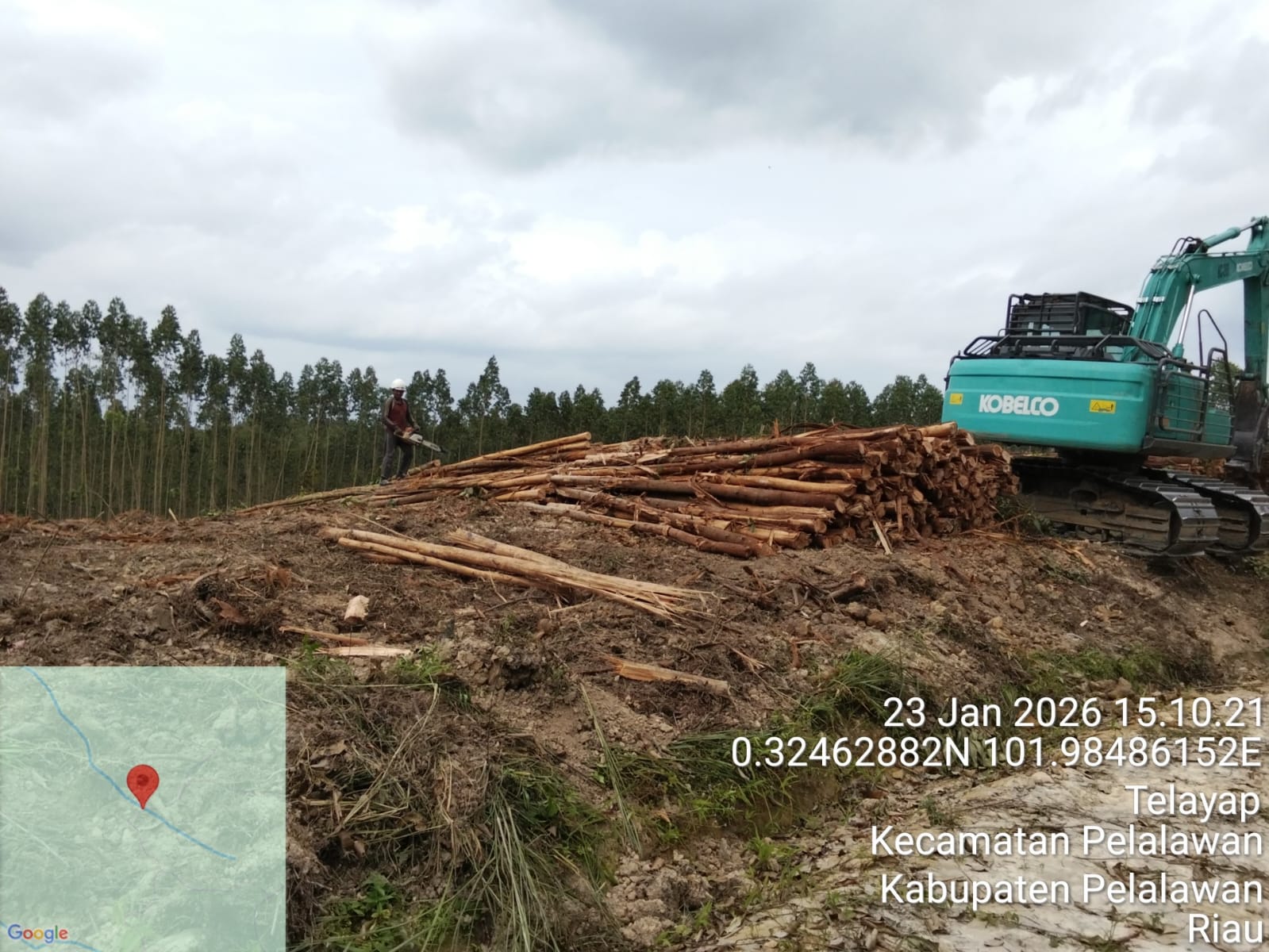 Bahkan hingga berita ini diterbitkan pada 24 Januari 2026, PT Arara Abadi diduga masih melakukan kegiatan penebangan di lokasi tersebut dengan pengawalan oleh petugas keamanan perusahaan.