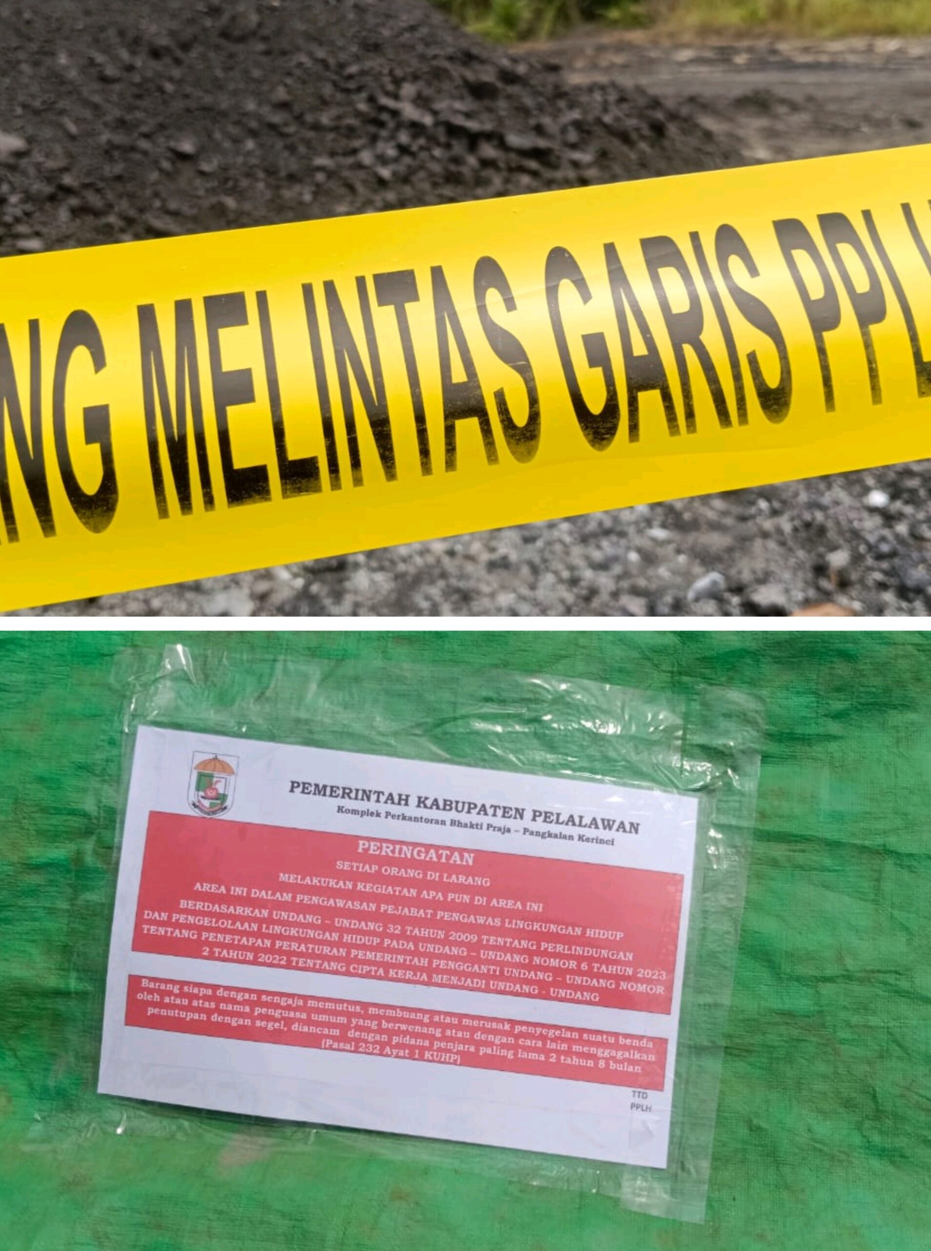 Pelalawan || judicialjustice.com – Dinas Lingkungan Hidup (DLH) Kabupaten Pelalawan melalui tim Penegakan Hukum (Gakkum) memasang Garis PPLH  di lokasi penumpukan batu bara (stockpile) milik PT Manunggal Inti Artamas (MIA) yang berada di KM 5 Kelurahan Kerinci Barat, Kamis (6/11/2025).