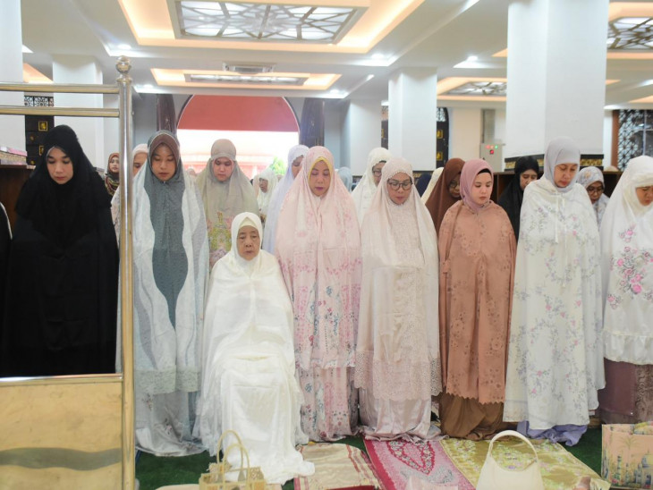 Ketua TP PKK Kampar Nurheryani Ahmad Yuzar Shalat Idul Fitri Bersama Masyarakat di Islamic Center Bangkinang