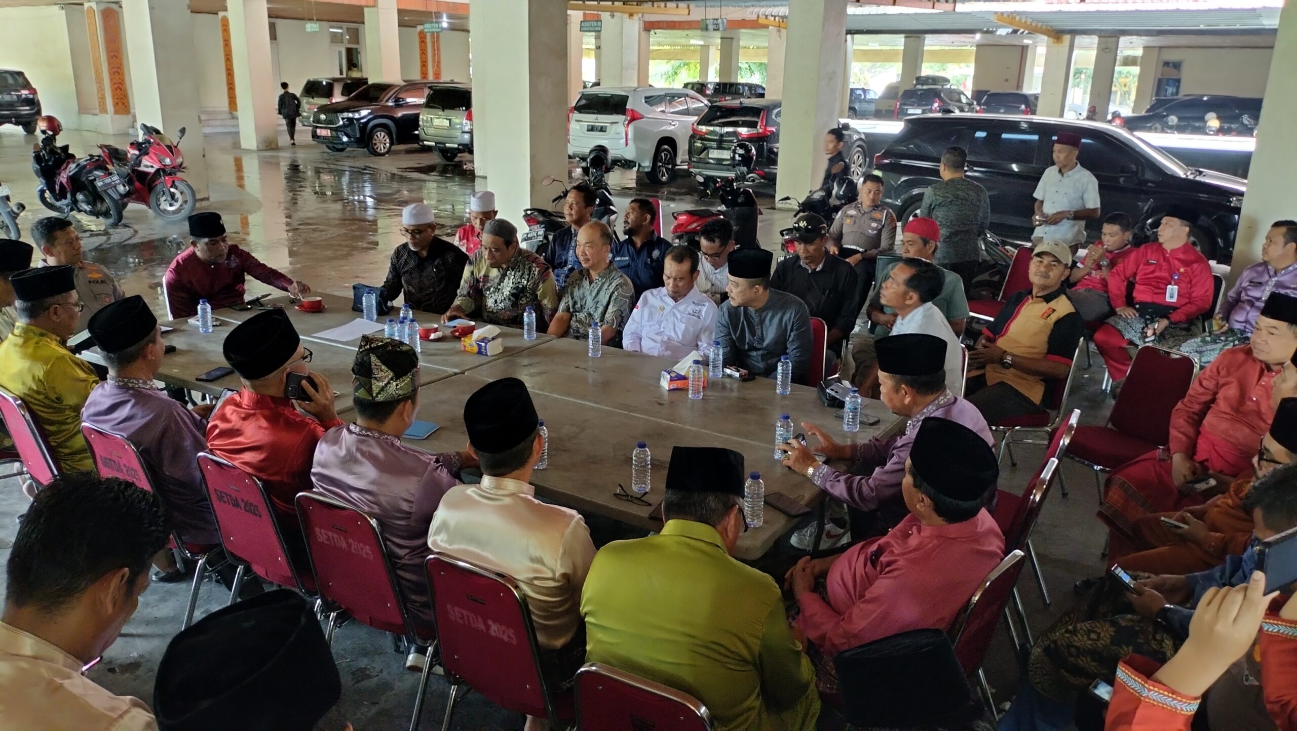 Dalam pertemuan tersebut turut hadir Bupati Pelalawan H Zukri SM MM, Kapolres Pelalawan John Luois Letedara, S.I.K, jajaran Sekda Pelalawan, para Asisten, Kepala Dinas, serta perwakilan seluruh paguyuban, dilaksanakan di halaman Kantor Bupati. Jumat (5/12/2025).