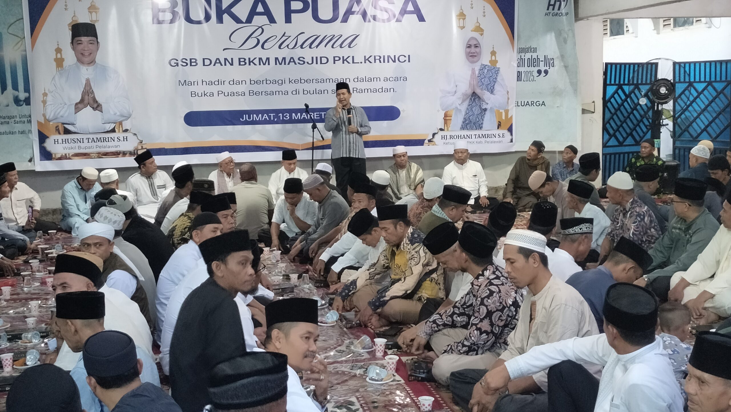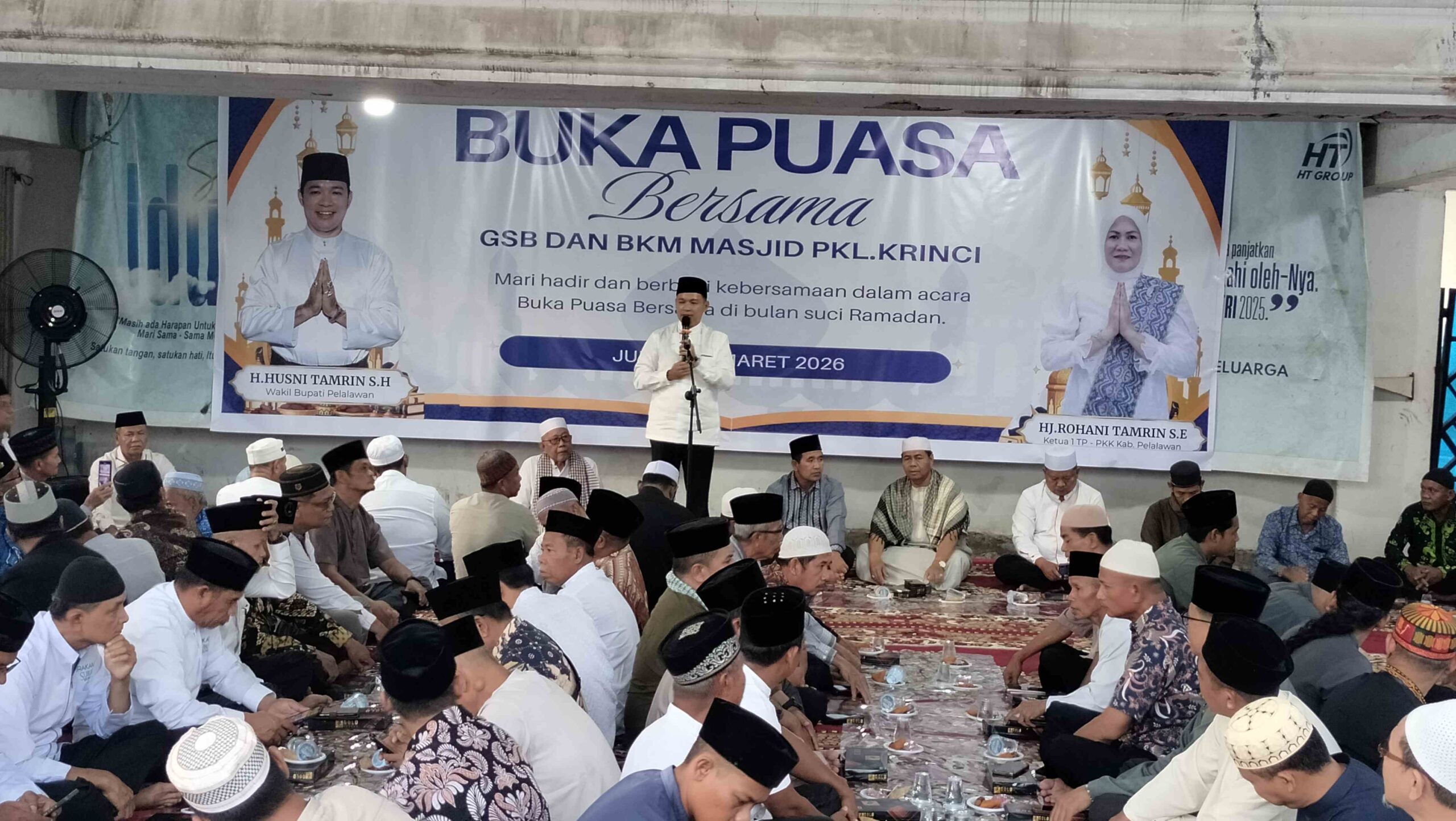 PANGKALAN KERINCI || Judicialjustice.com – Suasana penuh kebersamaan dan kekhidmatan terasa dalam kegiatan buka puasa yang diadakan oleh Wakil Bupati Pelalawan, H. Husni Tamrin, SH bersama Gerakan Subuh Berjamaah (GSB) bersama Badan Kemakmuran Masjid (BKM) Masjid Pangkalan Kerinci. Kegiatan ini dilaksanakan di kediaman Wakil Bupati Pelalawan, H. Husni Tamrin, SH, bersama istrinya Hj. Rohani Tamrin, SE selaku Ketua TP-PKK Kabupaten Pelalawan, pada Jumat (13/3/2026).